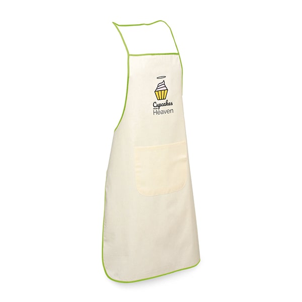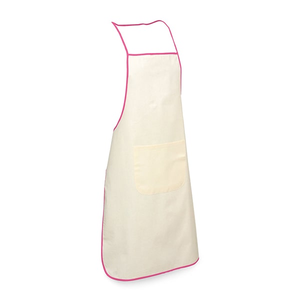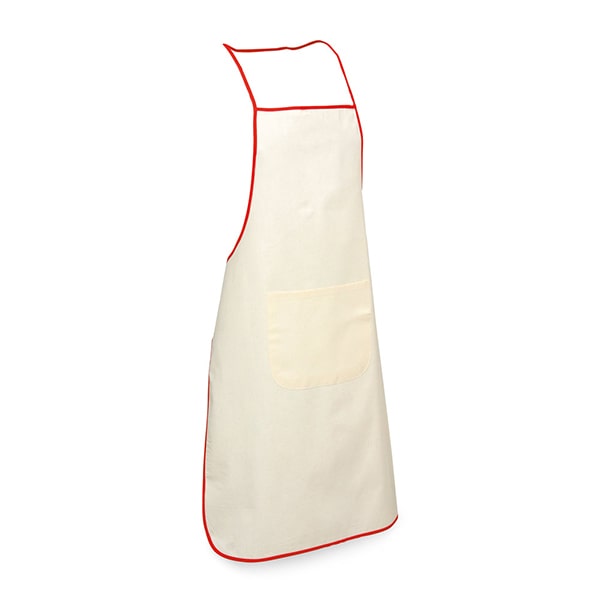 Avental em material macio 100% algodão em cor cru com detalhes coloridos. Avental com 1 bolso frontal e fitas de ajuste. 600 x 900 mm | Bolso: 250 x 200 mm