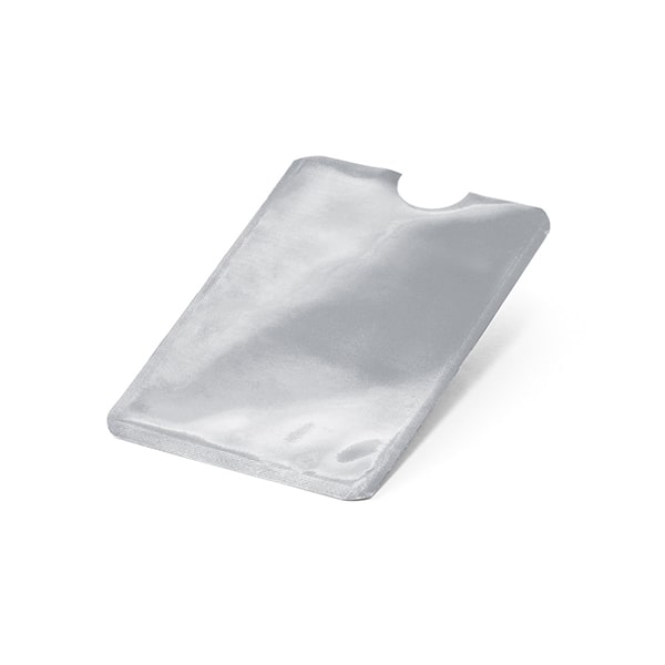 Porta cartões em alumínio com bloqueio de RFID, com capacidade para um cartão. 92 x 63 mm