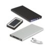 Bateria portátil em alumínio com painel solar e LED. Bateria de lítio com capacidade de 8.000 mAh e tempo de vida ≥ 500 ciclos. Com entrada 5V/1A, saída 5V/1-2.1A e 2 portas USB. Incluso cabo USB/micro USB para carregar a bateria. Fornecida em caixa presente. 155 x 75 x 10 mm | Caixa: 175 x 100 x 30 mm
